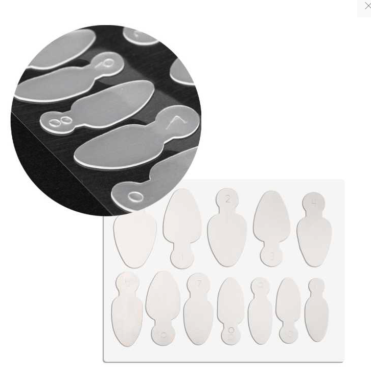 Silikonowe naklejki pomagają na zbudowanie żelem coverowym idealnego łożyska , tak by french konstrukcyjny był prosty i szybki w wykonaniu. Dzięki 4 różnym kształtom możemy wykonać idealne łożysko do każdej długości paznokcia, od kwadratów aż po awangardę.