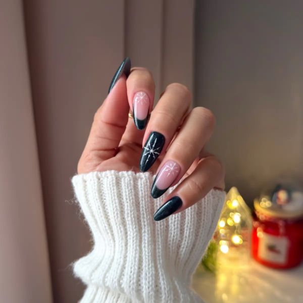 Głęboka zieleń z subtelną drobiną wygląda jak choinka po lekkim liftingu w luksusowym spa. To kolor samozaparcia, ironii i błysku w oku, gdy mówisz: Tak, wszystko pod kontrolą, choć właśnie przykleiłaś do kota wstążkę. Bo czasem, żeby uratować Święta, trzeba po prostu założyć własny strój elfa.