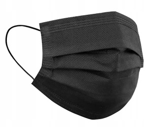 Maseczki ochronne jednorazowe 3 warstwowe CZARNE / 50 sztuk