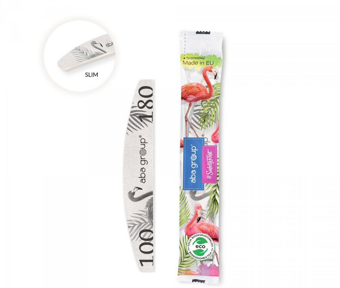 Pilnik do paznokci półksiężyc Aba Group zapakowany w jednorazową folię o gradacji 100/180 SLIM