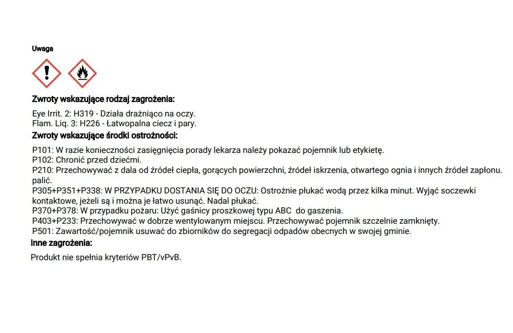 Nie stosować na delikatnych powierzchniach wrażliwych na działanie alkoholi (np. szkło akrylowe).