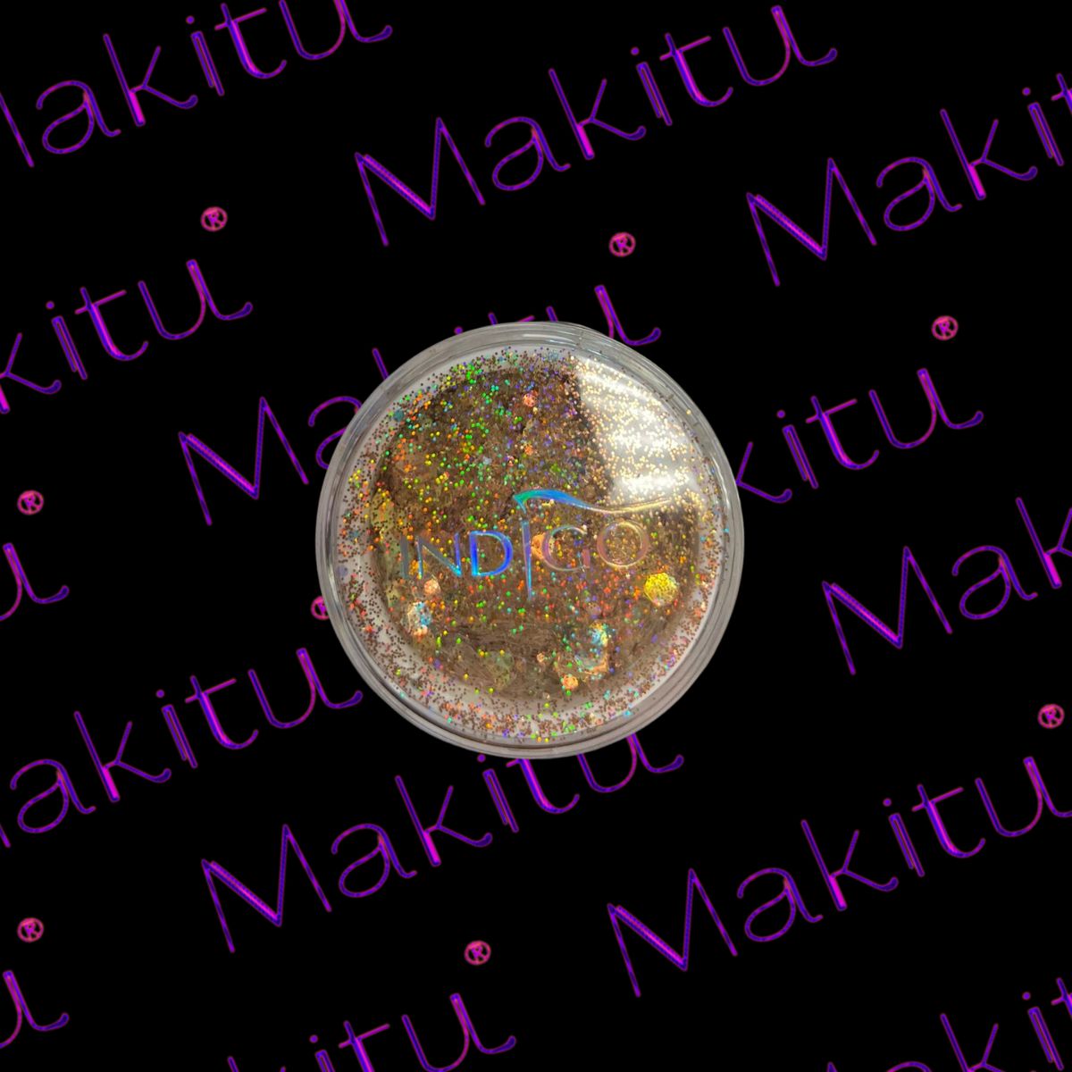 Princess Multimilioner to pyłek z drobinami różnej wielkości multikolorowy w odcieniu złota.