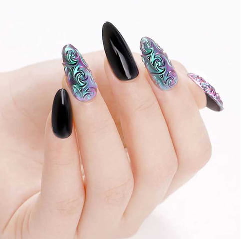 Płytka z przepięknymi wzorami, która łatwo i szybko pozwoli Ci stworzyć niesamowite zdobienia na paznokciach przy pomocy jedynie akrylożelu, pyłku ulubionym kolorze typu: chrome, jednorożec, glass, chameleon.