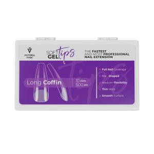 Tipsy do przedłużania paznokci DŁUGA BALERINA 500 sztuk / Soft Gel Tips Long Coffin VICTORIA VYNN