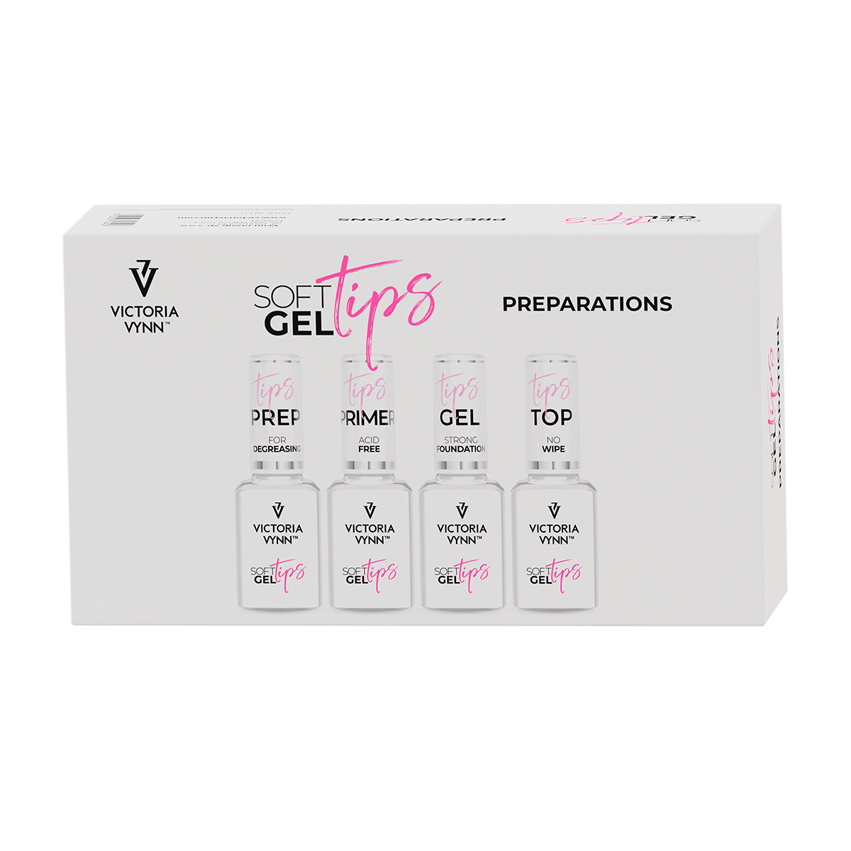 ZESTAW Preparatów do Soft Gel Tips (PREP, PRIMER, BAZA, TOP) 4 x 15ml VICTORIA VYNN